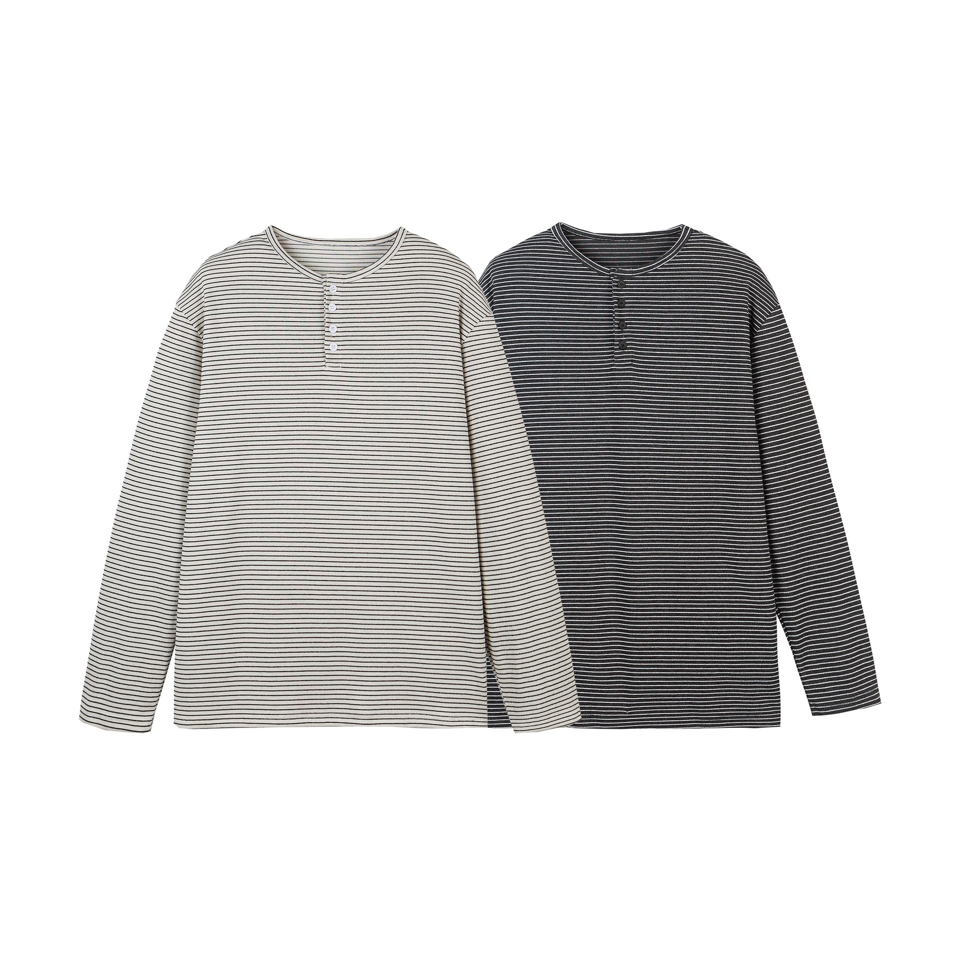 Loose-Fit Henley Striped Long Sleeve T-Shirt for Men and Women