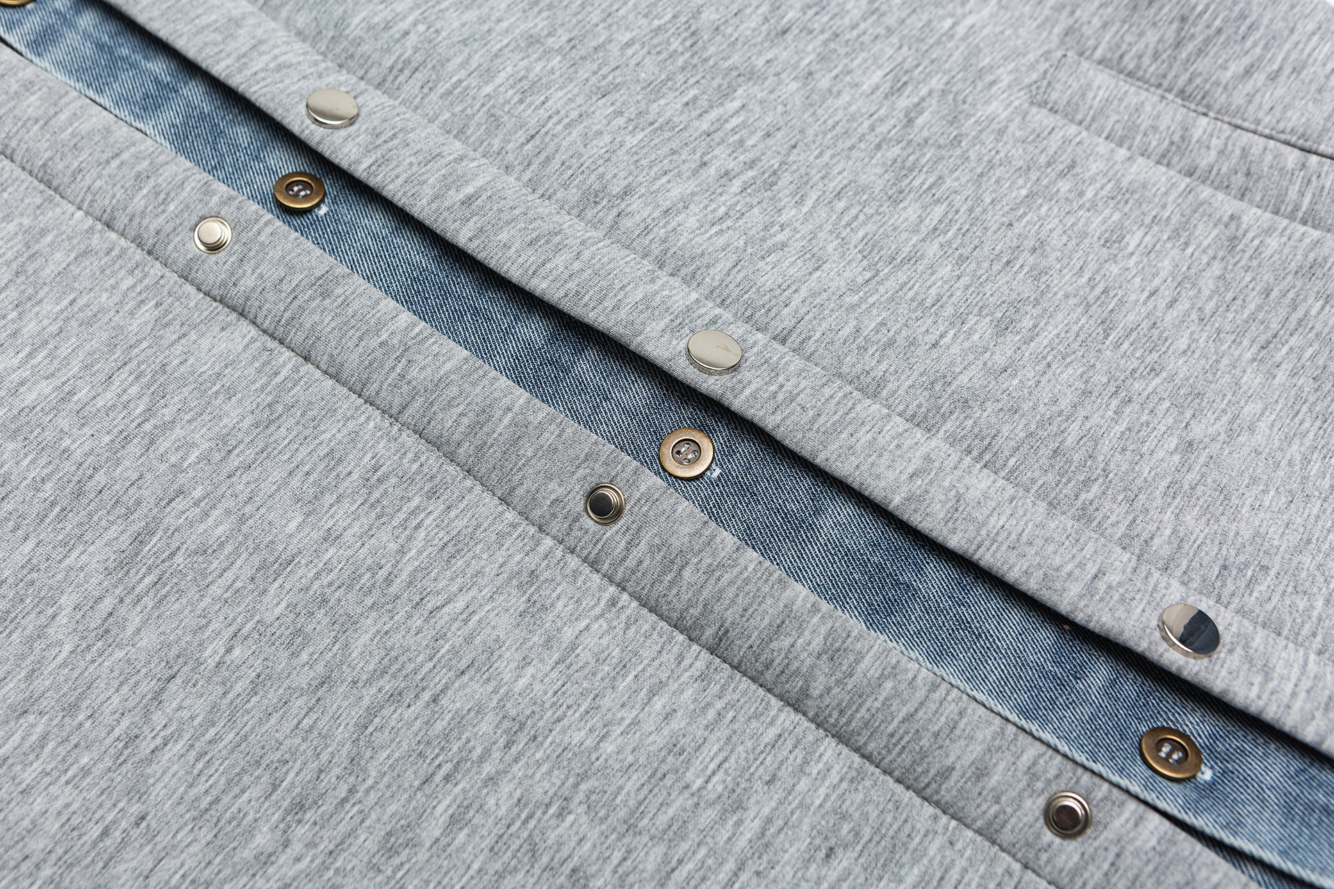 Patchwork False Two-Piece Denim Shirt Collar Cardigan Jacket