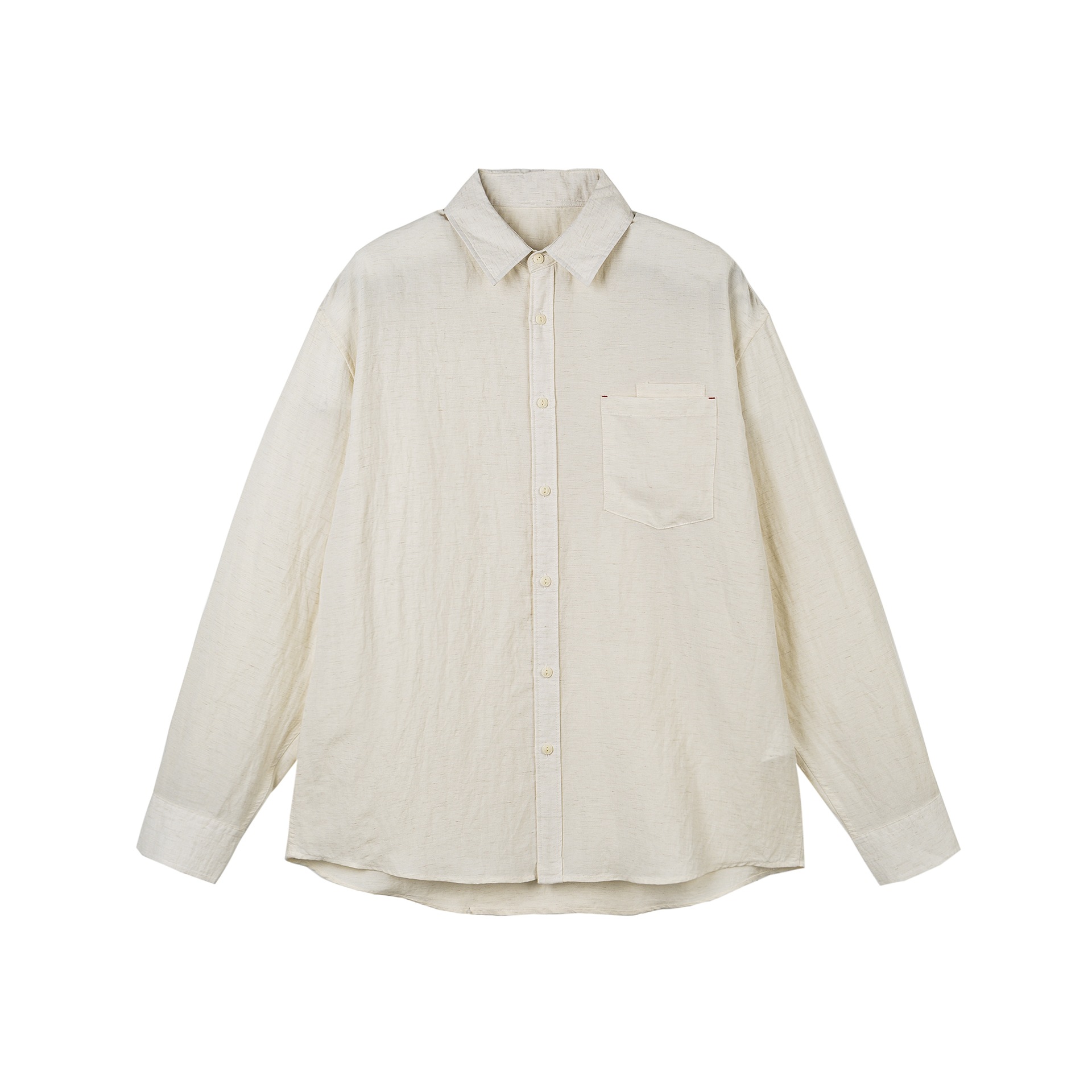 Solid Color Patch Pocket Loose Unisex Linen Long Sleeve Shirt